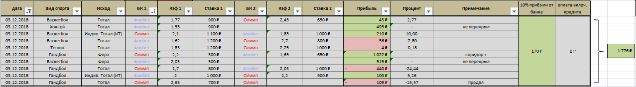 1. Отчет за 03.12.2018. бaнк - 1700 р. Сканер - 3bet. БК - Олимп, Фонбет.