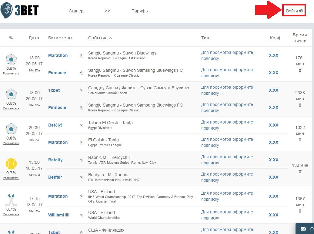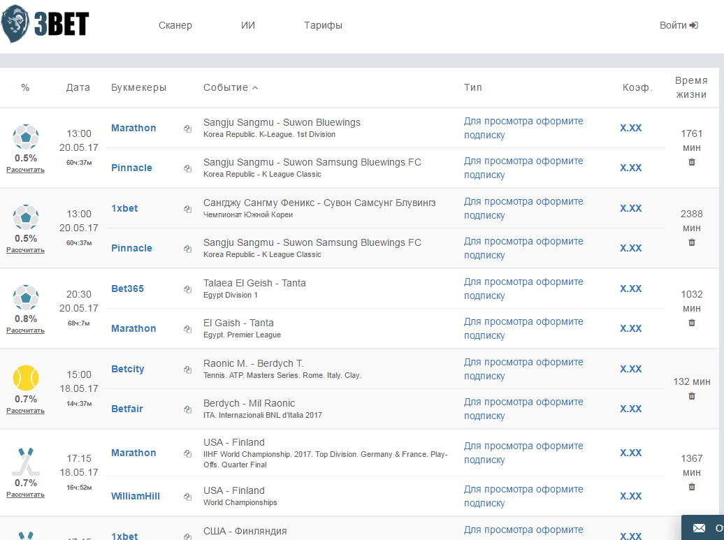 Сегодня с утра всё хорошо работало....много вилок с различными кэфами..... А вот вечером включил (обновил) а сканер выдал - ДЛЯ ПРОСМОТРА ОФОРМИТЕ ПОДПИСКУ.....
