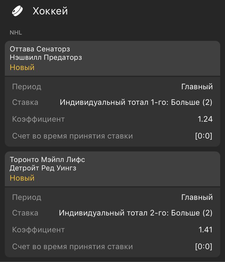 9 победой был экспресс с одним событием на победу и возвратом что и считается победой, ставка то выигрышная. смотрите статистику, а далее идет поражение Питсбурга. Победа Флориды и ОТ с Каролиной 😂😂😂 вот подробная статистика